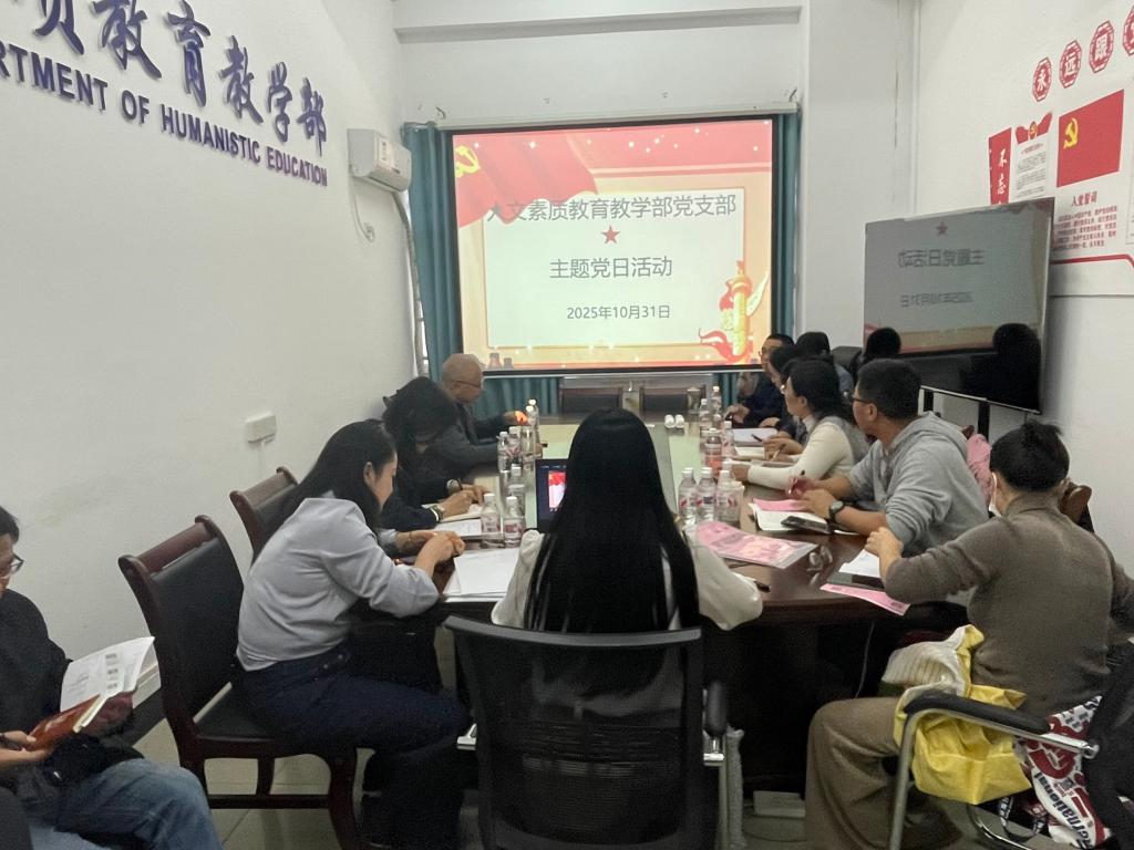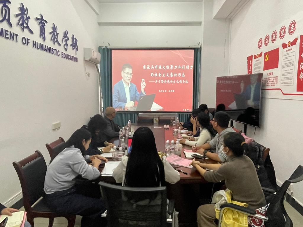 10月31日,人文素质教育教学部在屏风校区7110会议室开展主题党日活动,组织全体党员集中学习“习近平文化思想大讲堂第二讲”直播课。