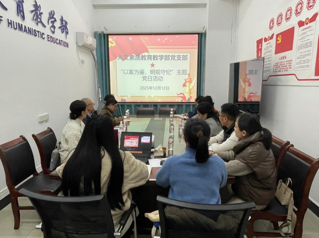 12月12日,人文素质教育教学部党支部在屏风校区7110会议室开展“以案为鉴,明规守纪”主题党日活动,支部全体党员参加。