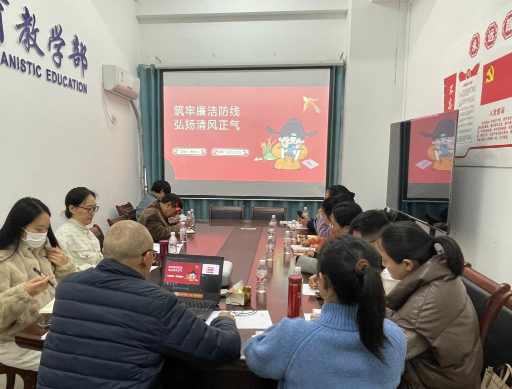 为深化支部廉政教育,推动中央八项规定精神学习教育常态化长效化,12月12日,支部书记覃业飞在屏风校区7110会议室主讲“筑牢廉洁防线,弘扬清风正气”廉政教育专题党课,全体党员参加学习。